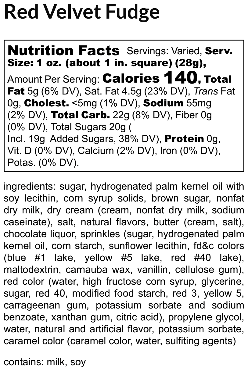 All of our fudge may contain trace amounts of nuts, milk proteins, gluten and peanuts that are used at our facility.