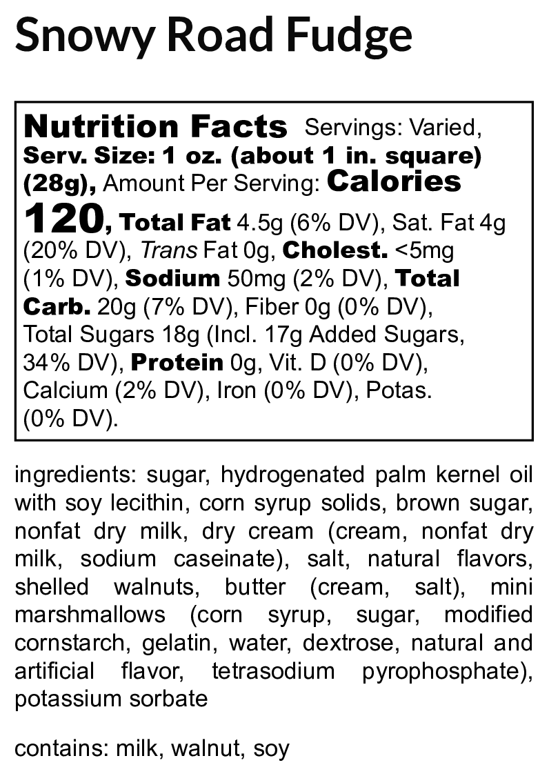 Wintery magic, Uncle Butch's Snowy Road Fudge is a delightful twist on the classic Rocky Road. Creamy vanilla fudge is a perfect base, swirled with fluffy marshmallows and crunchy walnuts. It's a delicious mix of smooth, soft, and crunchy textures. Snowy Road Fudge delivers a frosty wonderland of flavors and textures in every delicious slice, perfect for your holiday gatherings, gifting, or a cozy night by the fire.