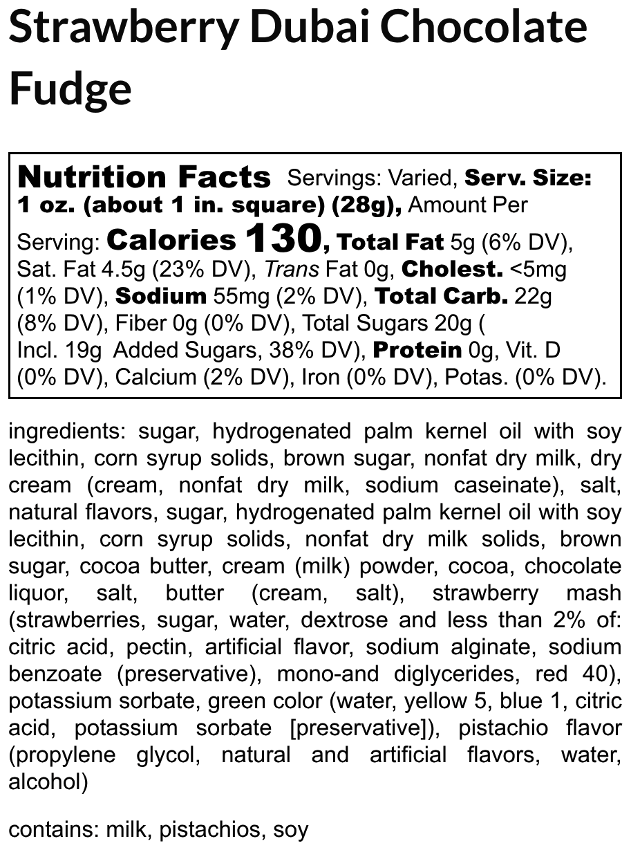 Get ready to fall in love with our Dubai Chocolate Strawberry fudge! This work of art features rich, velvety chocolate swirled with the sweetness of ripe strawberries for the perfect, sophisticated, and creamy pairing. Every bite is a delightful escape that feels like pure magic!